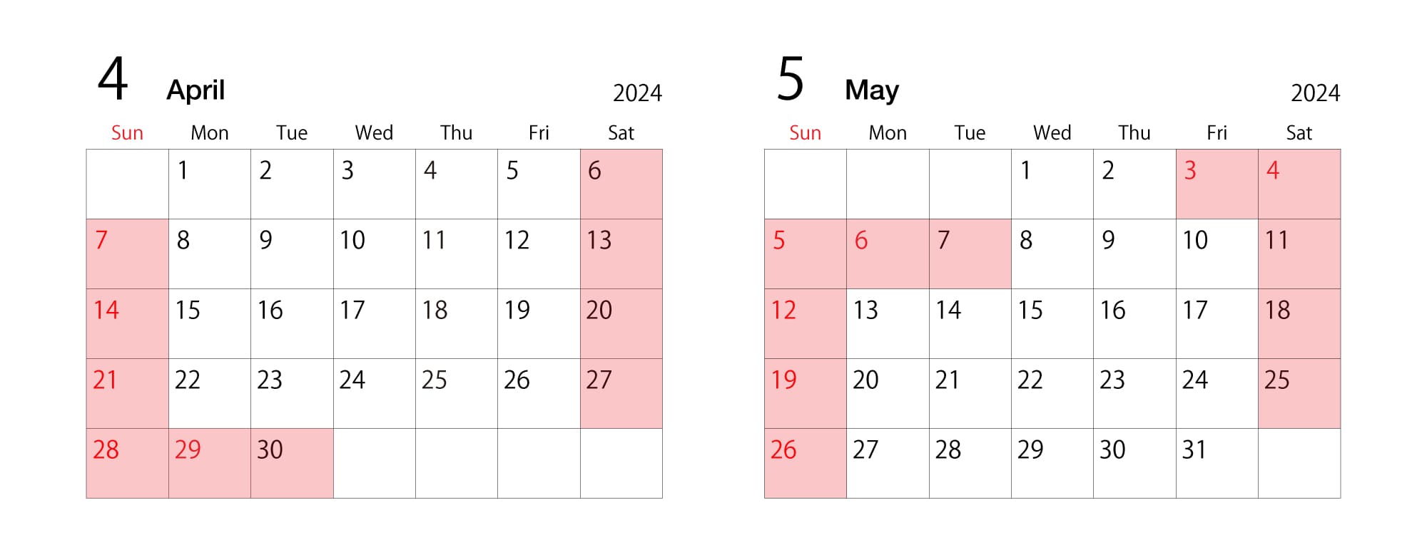 GW期間 休業日カレンダー