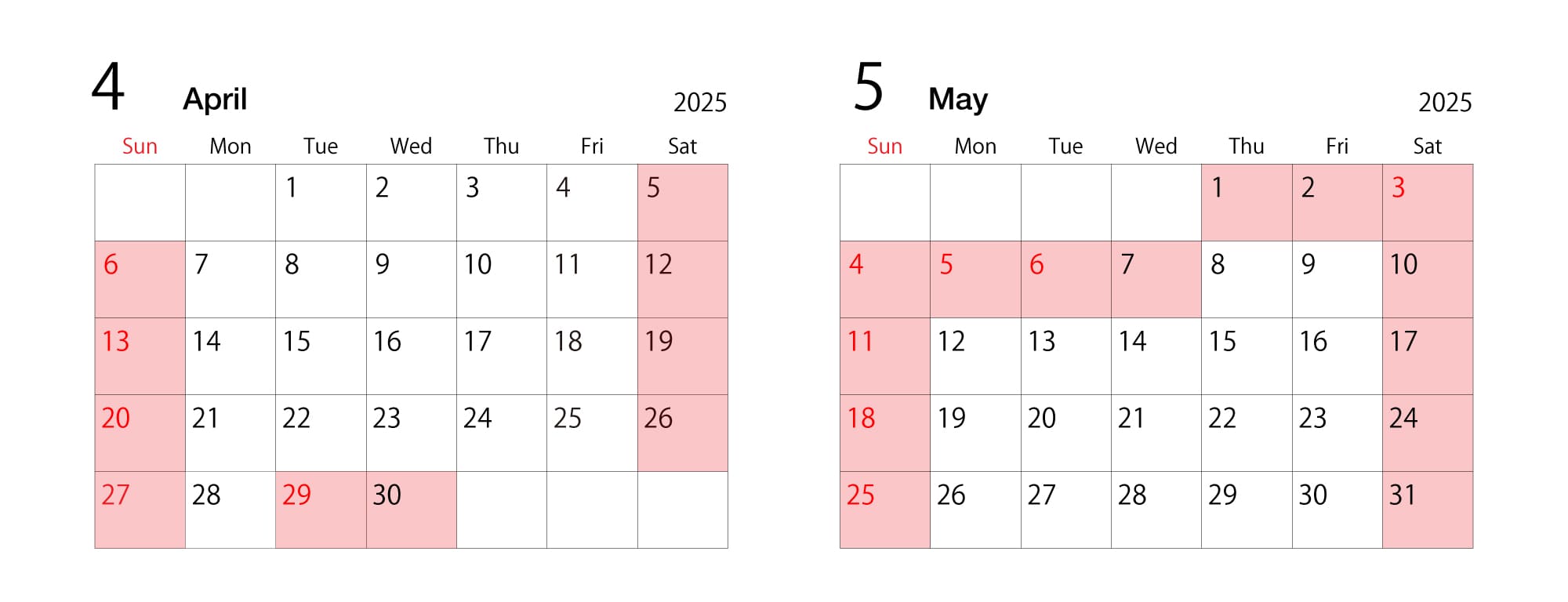 GW期間 休業日カレンダー