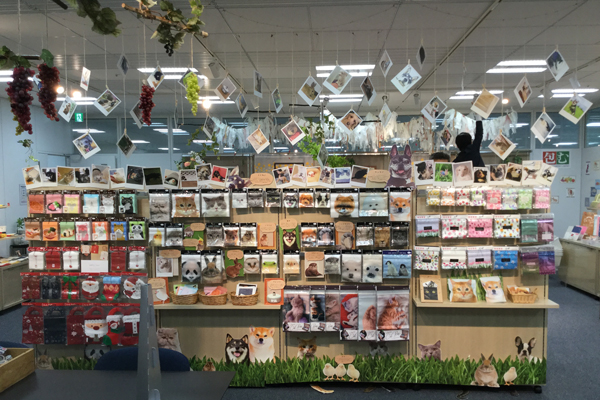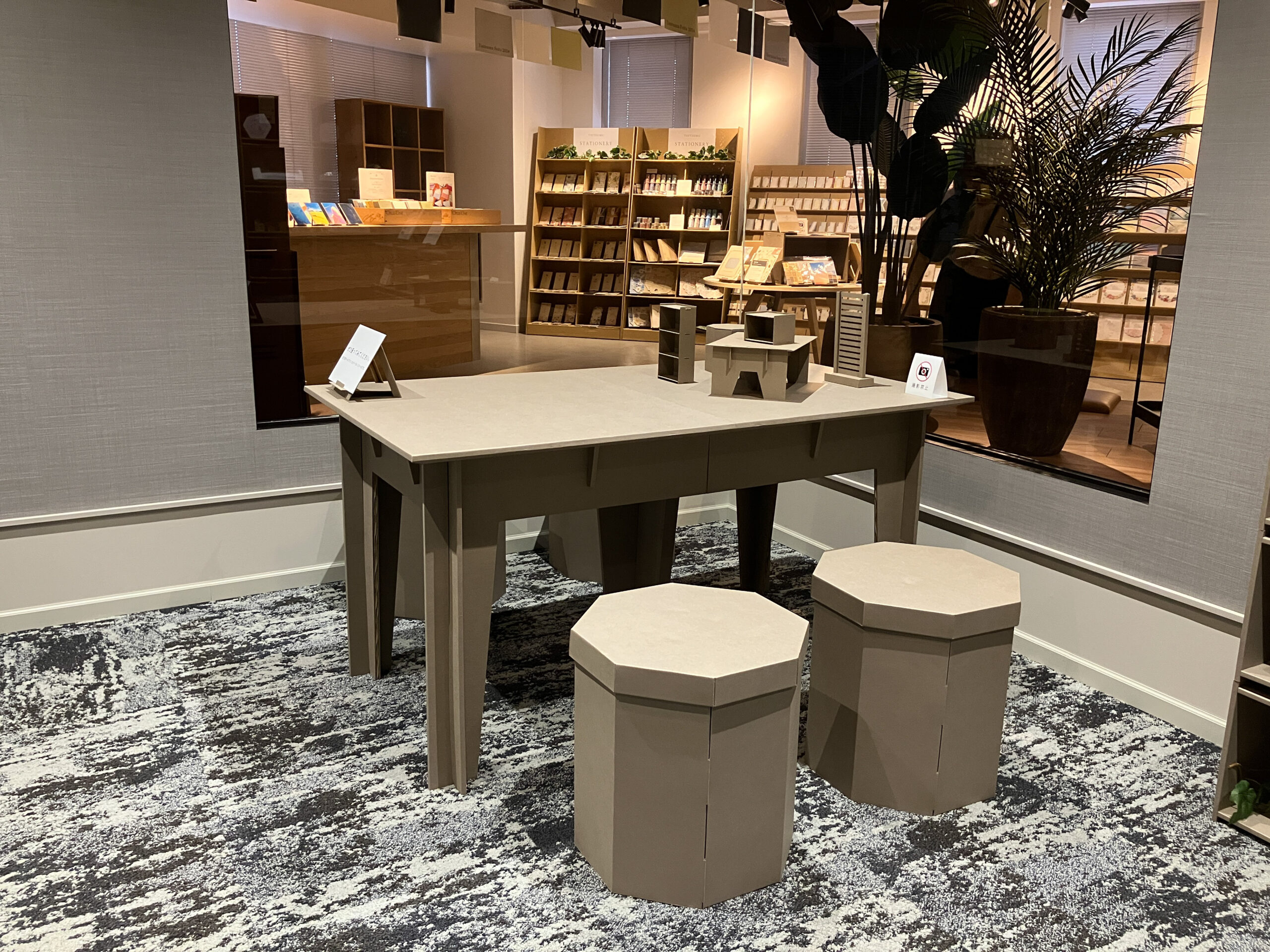 ダンボールでできたインテリアの展示や、限定カードの販売などが好評でした。